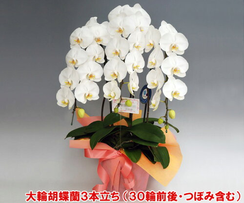 母の日ギフト 送料無料 豪華胡蝶蘭3本立ち(30輪前後つぼみ含む)ホワイト ※お届け日の指定は承る事が出来ません。